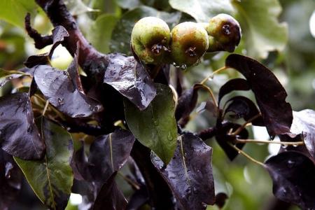 - La floraison noire sur les feuilles de poirier est un symptôme d'un champignon fuligineux qui se développe avec succès sur les sécrétions sucrées laissées par les pucerons ;
