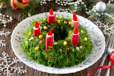 Sous les plats de poisson et de viande (sauf pour le bœuf, c'est tabou sur la table du Nouvel An), mettez quelques feuilles de laitue ou de chou chinois. Vous pourrez ainsi apaiser le Taureau et impressionner les convives avec une belle présentation. Les baies sont également une excellente option pour une table de fête. Et avec l'aide d'eux, vous pouvez très rapidement décorer d'autres délices.