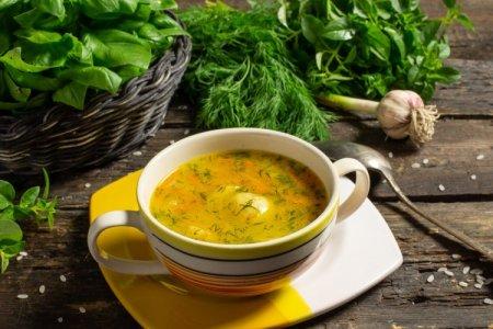 Tu auras besoin de: 300 g de poisson, 1 oignon, 6 pommes de terre, 1 carotte, 80 g de riz, 0,5 bouquet d'aneth, épices.
