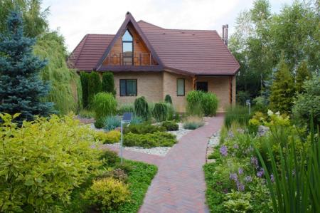 Pour faciliter la marche sur le site à la fois en automne pluvieux et en hiver neigeux, tracez des chemins à l'avance. Ils peuvent être décorés d'absolument n'importe quelle manière - béton, pierre, bois, dalles, grès cérame ou tout autre matériau.
