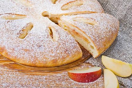 Préparation: Battre le beurre et le sucre et ajouter les œufs, puis la farine. Mettez la pâte finie au réfrigérateur pendant une demi-heure, mais pour l'instant coupez les pommes en tranches. Étalez la pâte dans un moule, placez les pommes sur le pourtour, remplissez le milieu de confiture et repliez les côtés. Cuire 35 minutes à 180 degrés.