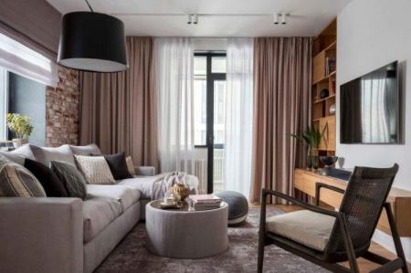 Si vous préférez les rideaux occultants classiques, faites attention aux rideaux jusqu'au sol. Dans un intérieur moderne, ils sont texturés et expressifs, mais pas trop prétentieux. Brosses de fossé, lambrequins et décor envahissant au profit de boucles de préhension minimalistes et d'œillets élégants.