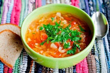 Préparation: Couper l'oignon en demi-rondelles et faire revenir jusqu'à ce qu'il soit doré. Ajouter la tomate hachée, le poivron et faire suer pendant 5 minutes. Versez la friture dans l'eau bouillante. Au bout de 5 minutes, ajoutez le chou coupé en petites lamelles et salez. Cuire la soupe encore 5 minutes.